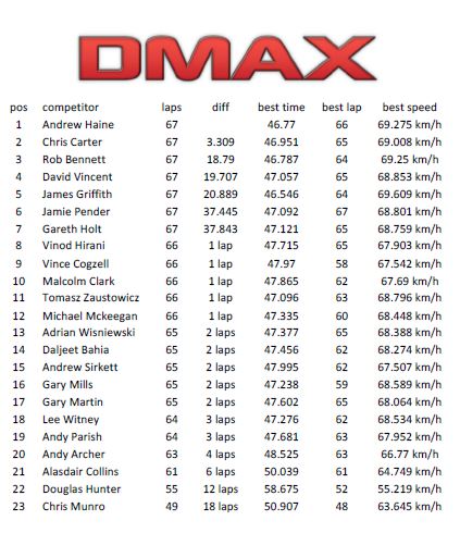 the hour long race he finished in 22nd place. This had tim 23rd in the